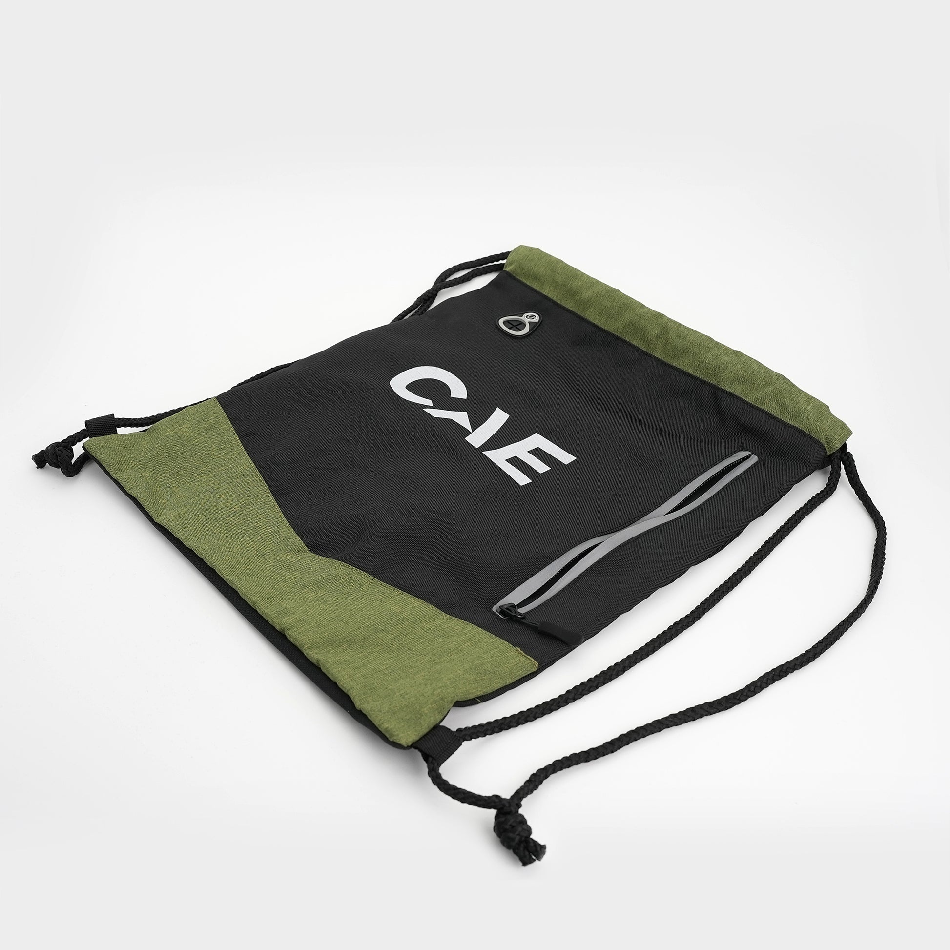 A lightweight and practical backpack for everyday use. This CAE drawstring bag features a two-tone black and olive design with the CAE logo on the front. The main compartment secures with a simple drawstring closure, while a front zippered pocket keeps small essentials handy. Built with durable fabric and reinforced corners, it’s perfect for carrying gym gear, books, or daily essentials.