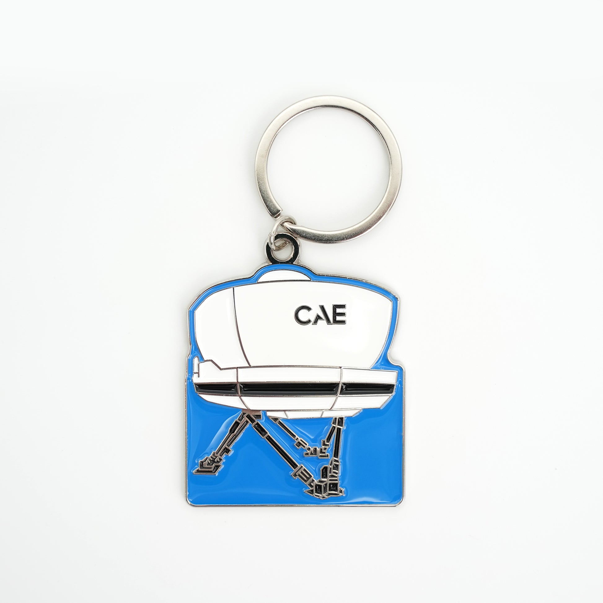 Carry a piece of aviation training with you wherever you go. This metal keychain features a colorful enamel design of the CAE full-flight simulator, complete with the CAE logo. Durable, lightweight, and the perfect accessory for keys, bags, or luggage.