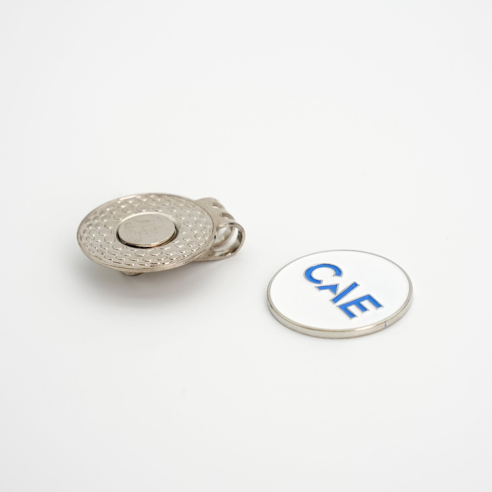 Includes a magnetic divot tool, CAE logo ball marker, and CAE logo golf shield.