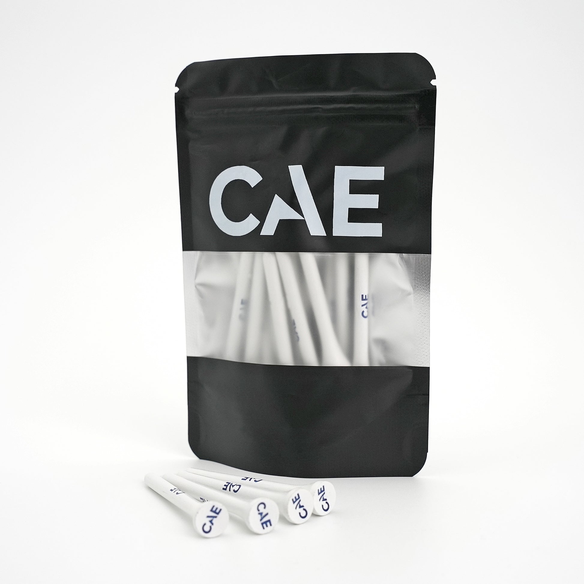 Elevate your game with these durable wooden golf tees, each printed with the CAE logo. Designed for consistent performance, they offer reliable support for your ball on every drive. Packaged in a resealable CAE-branded pouch, making them easy to store and carry in your golf bag.