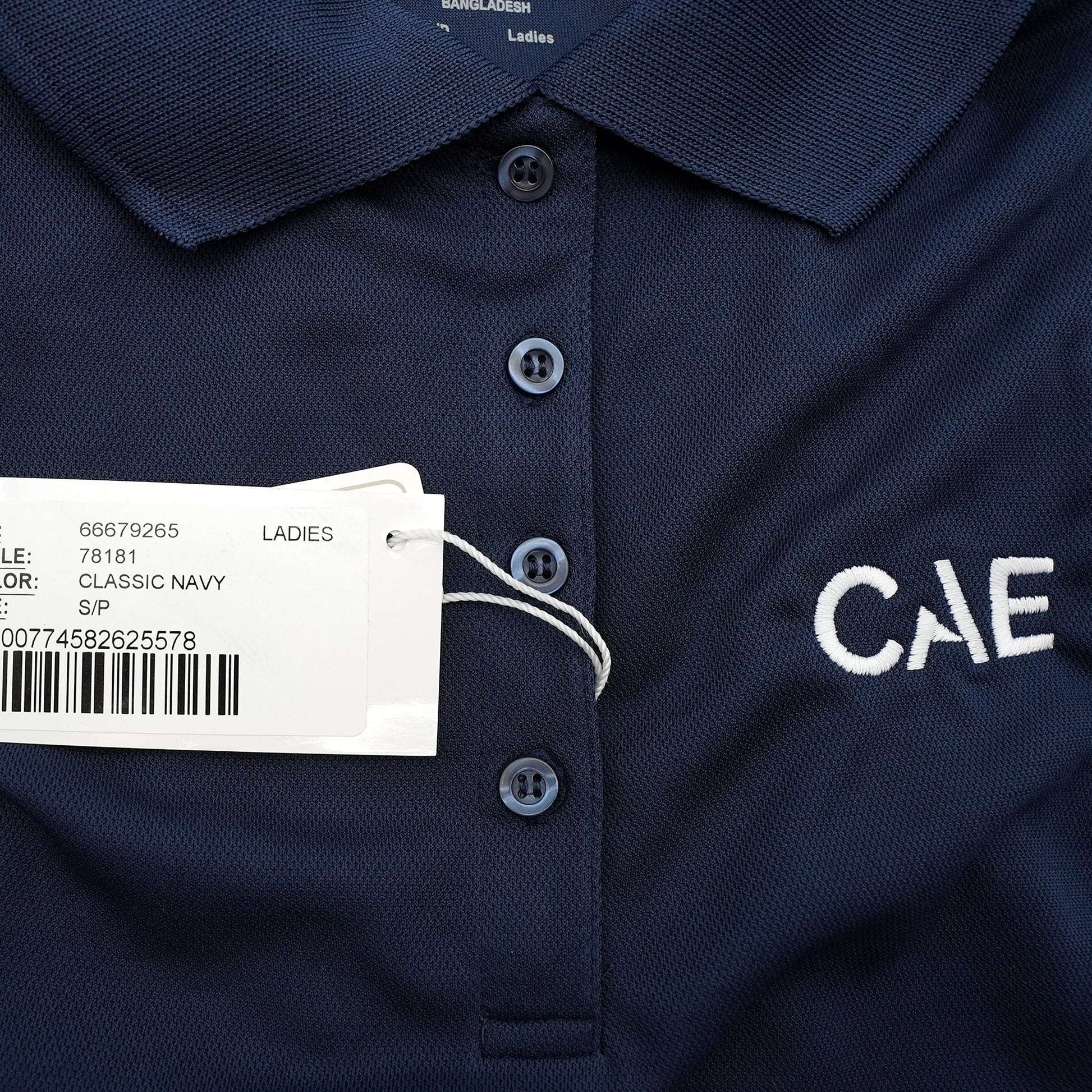 This Core 365 ladies’ polo in classic navy combines comfort, performance, and professional style. Made from 100% polyester with moisture-wicking, antimicrobial, and UV protection properties, it’s designed to keep you cool and comfortable all day. Featuring the embroidered CAE logo on the chest, this polo is perfect for both work and casual wear.