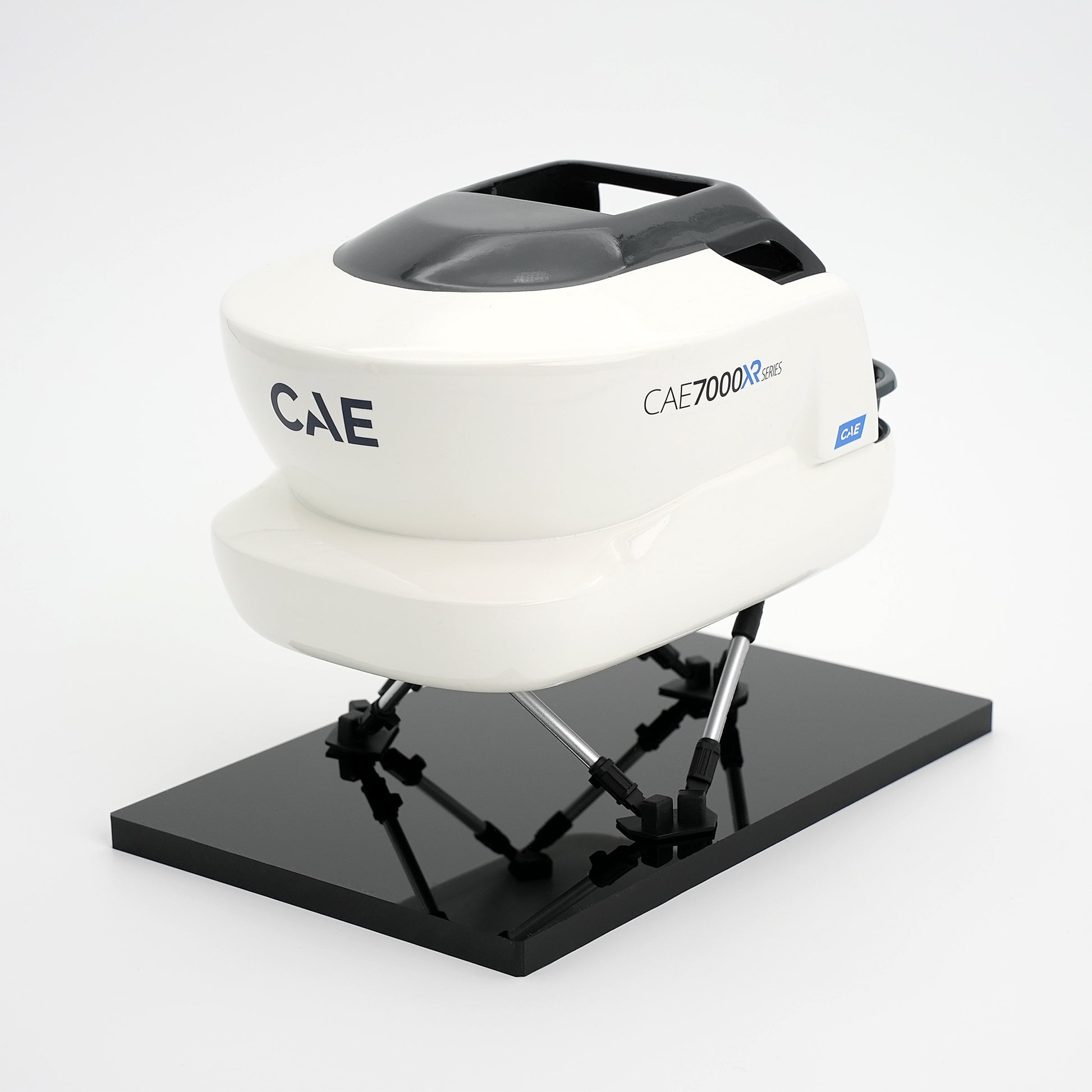 A sleek collector’s piece inspired by the CAE 7000XR full-flight simulator. This detailed desk model comes mounted on a glossy black base, making it perfect for display at home, the office, or in training centers. Available in two scales: 1/32 and 1/48, each model is individually boxed for safe keeping and presentation. An ideal gift for aviation enthusiasts and CAE supporters.