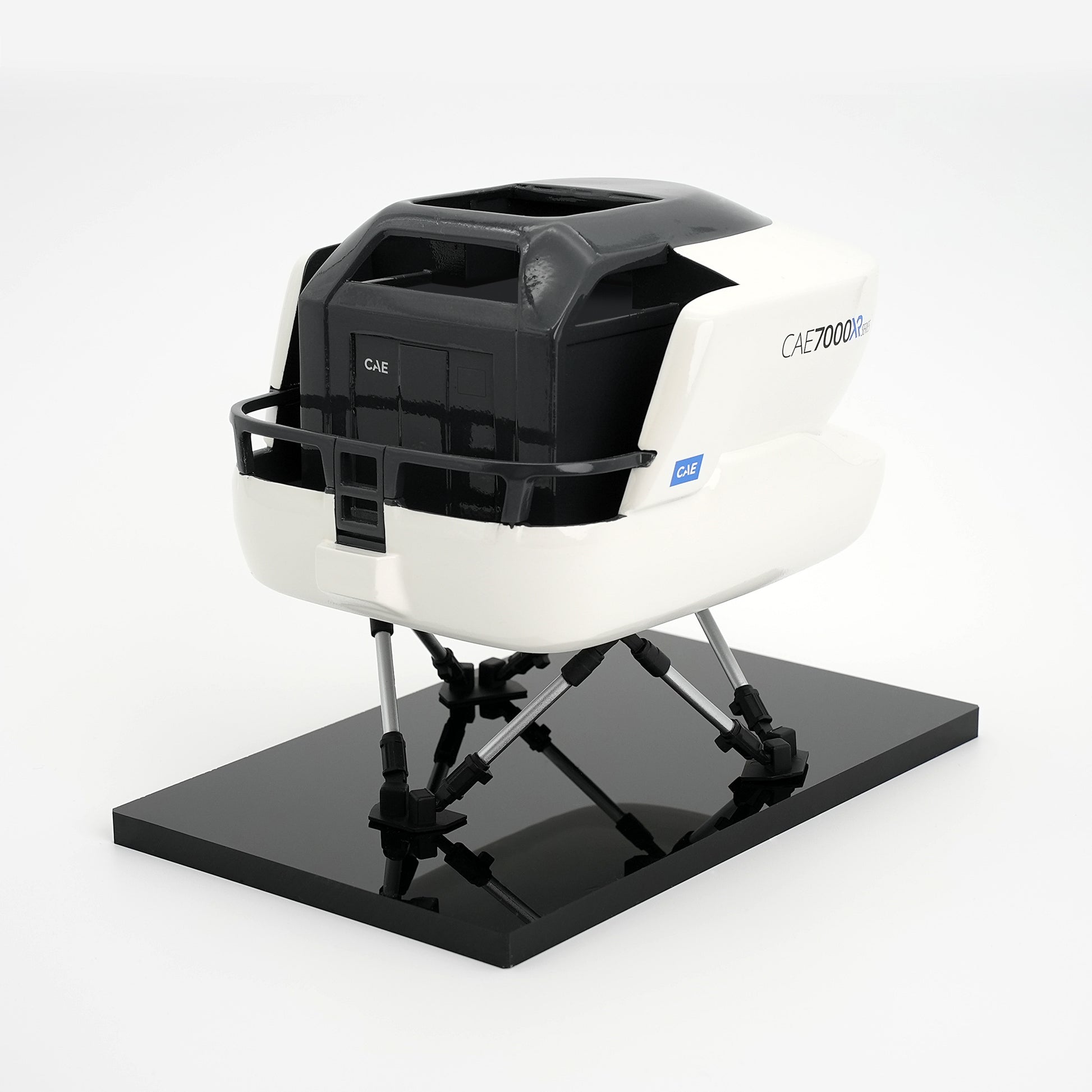 Une pièce de collection élégante inspirée du simulateur de vol complet CAE 7000XR. Ce modèle de bureau détaillé est monté sur une base noire brillante, ce qui en fait un article parfait à exposer à la maison, au bureau ou dans les centres de formation. Offert en deux échelles : 1/32 et 1/48, chaque modèle est emballé individuellement pour un rangement et une présentation sécuritaires. Un cadeau idéal pour les passionnés d’aviation et les admirateurs de CAE.